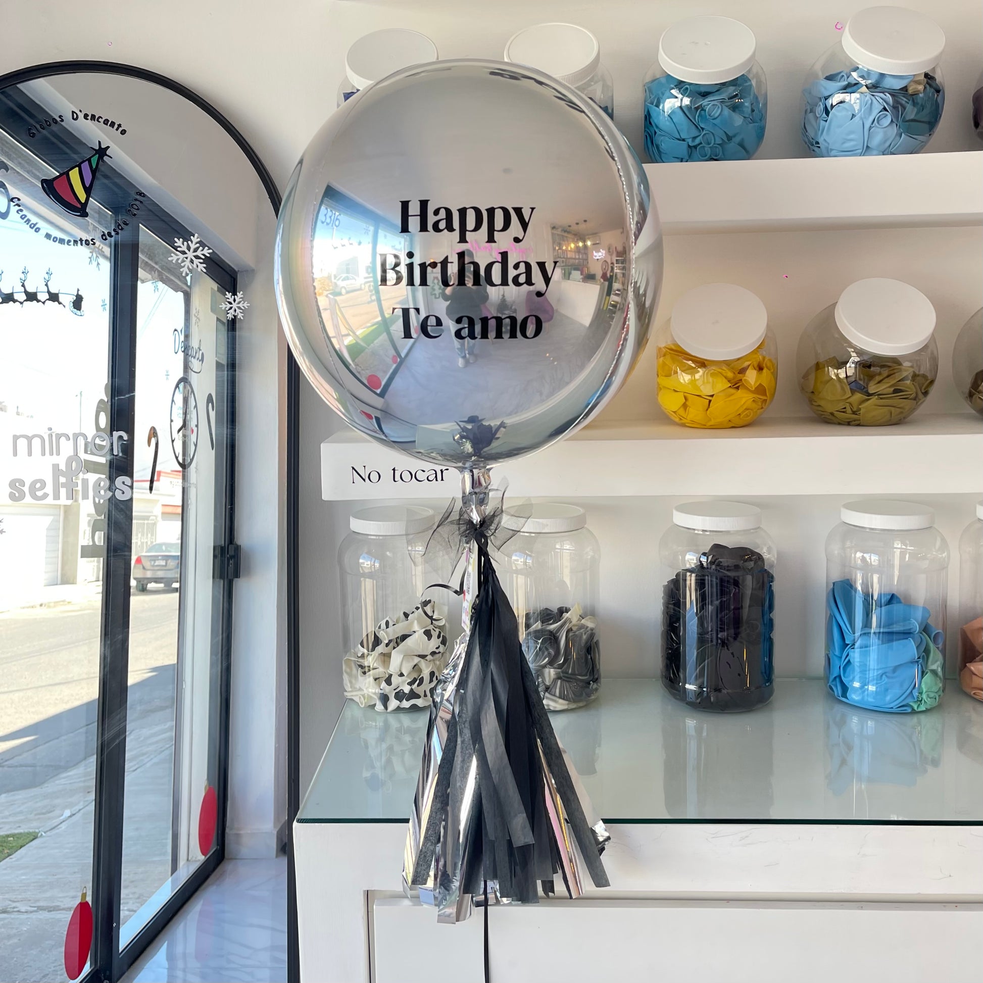 Una esfera con frase personalizada en vinil, para los amantes de la elegancia y lo sencillo.